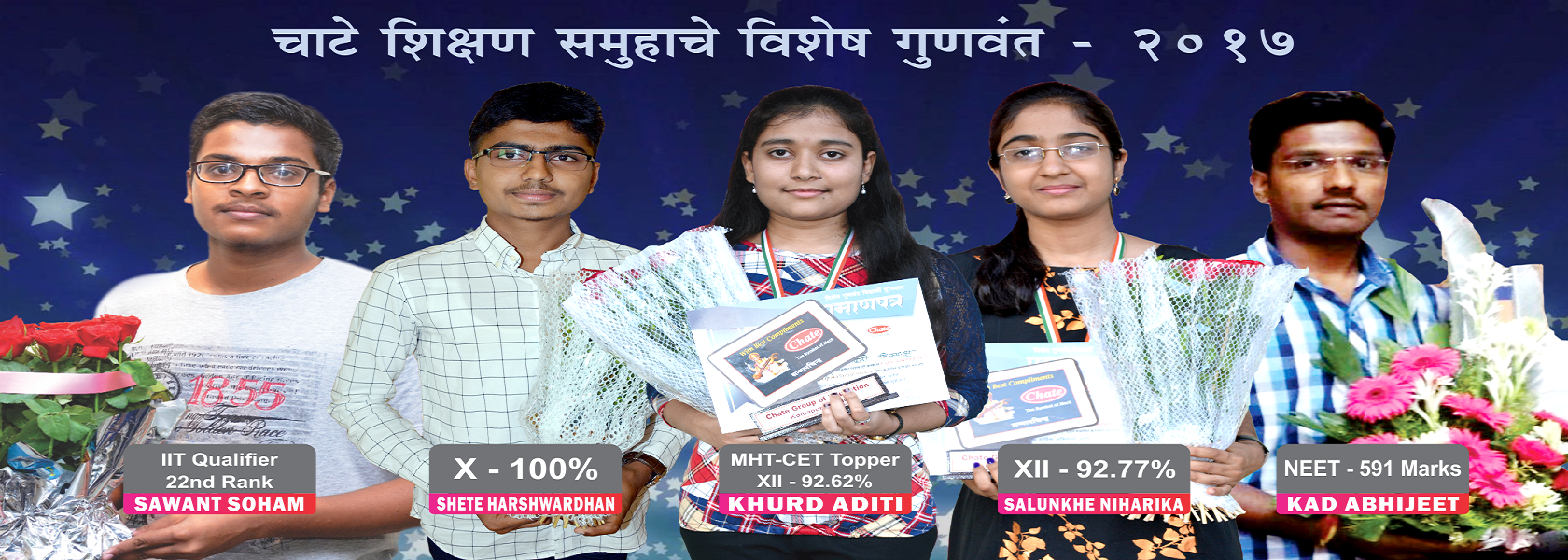 Shri Bhaskaracharya Prathisthan besides many English & Marathi Medium Schools at various locations. Chate Coaching Classes is structured on the principle of consistency and hardwork, and believes in scientific approach based on perfect planning and proper guidance. Chate Coaching Classes stands tall and in the forefront with hundred branches functioning all over Maharashtra.